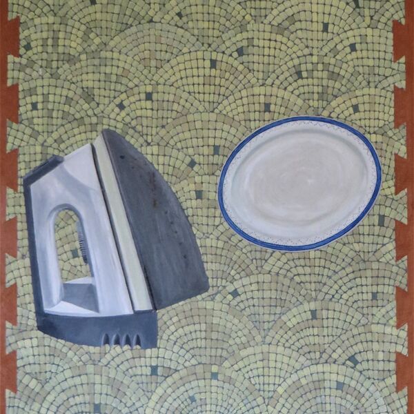 I became fascinated by the challenge of painting real objects against very flat backgrounds. I am very interested in the way space is constructed within paintings. The backgrounds are actually flat surfaces (ceramic tiles, marble etc) so although they are painted in a representational manner they indicate or re-enforce the real flatness of the support.