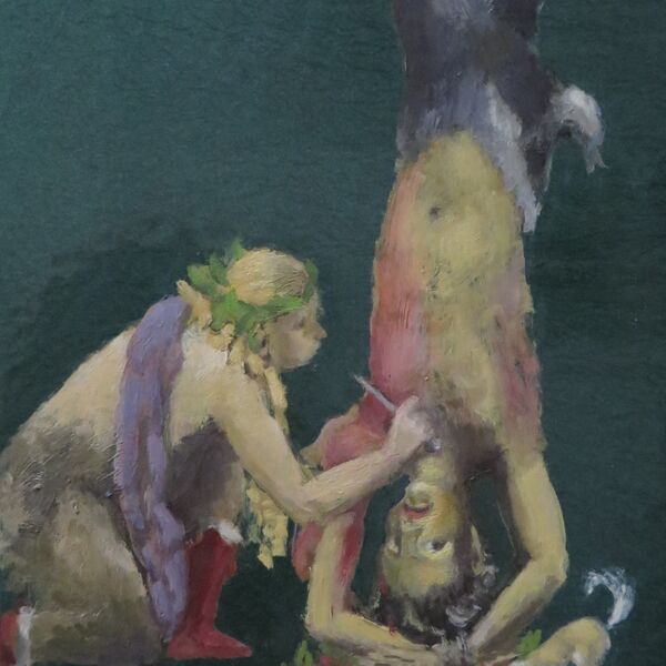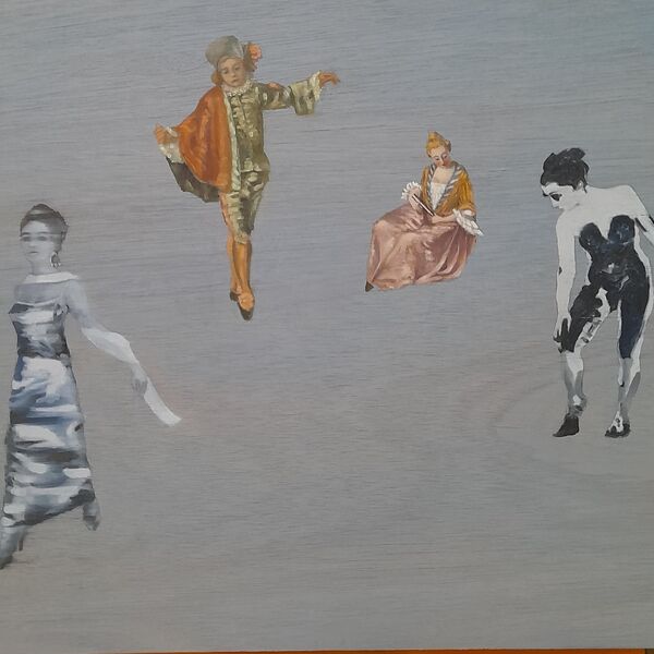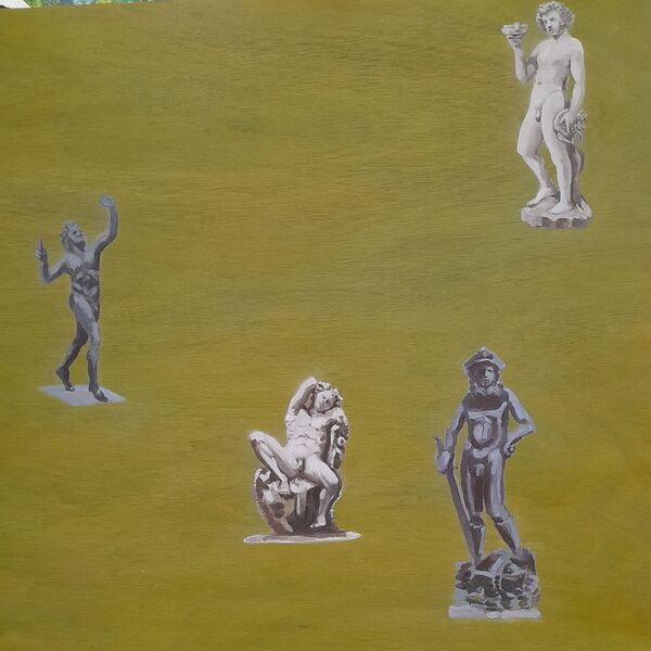 This gallery features work that is still being made in the studio. Some of the work is partial or unfinished. I am currently working on a series called Fields. In these paintings I am drawing together scenes or characters from a number of older paintings to create new narratives and interpretations.